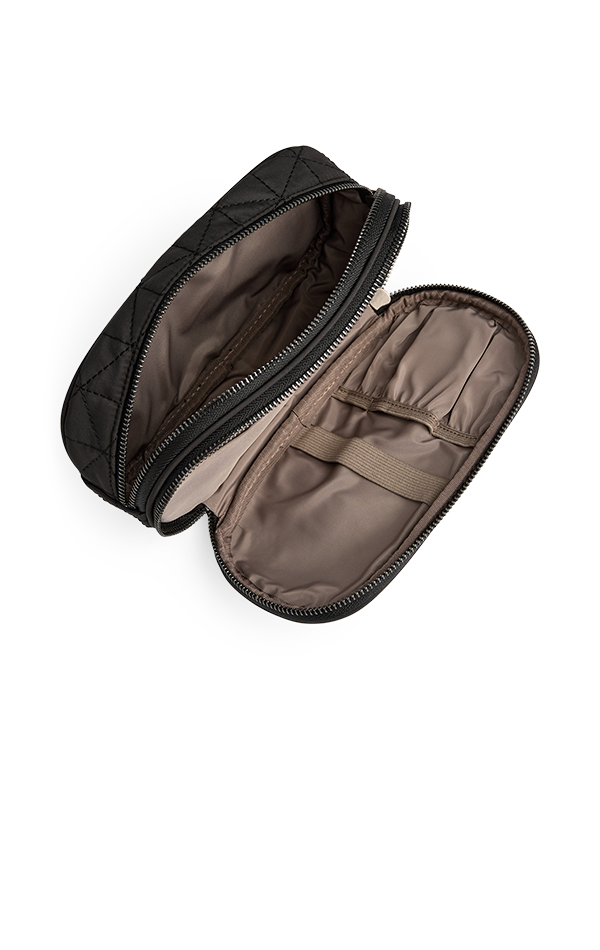 Den forreste lynlåsrum har inddeling til makeup børster samt to lommer