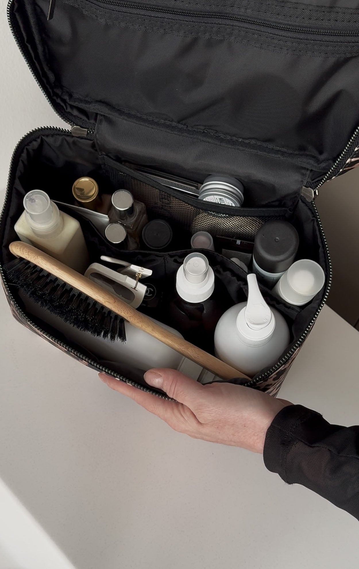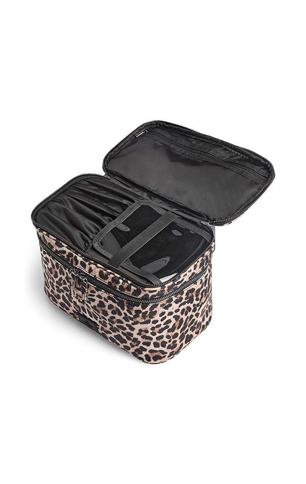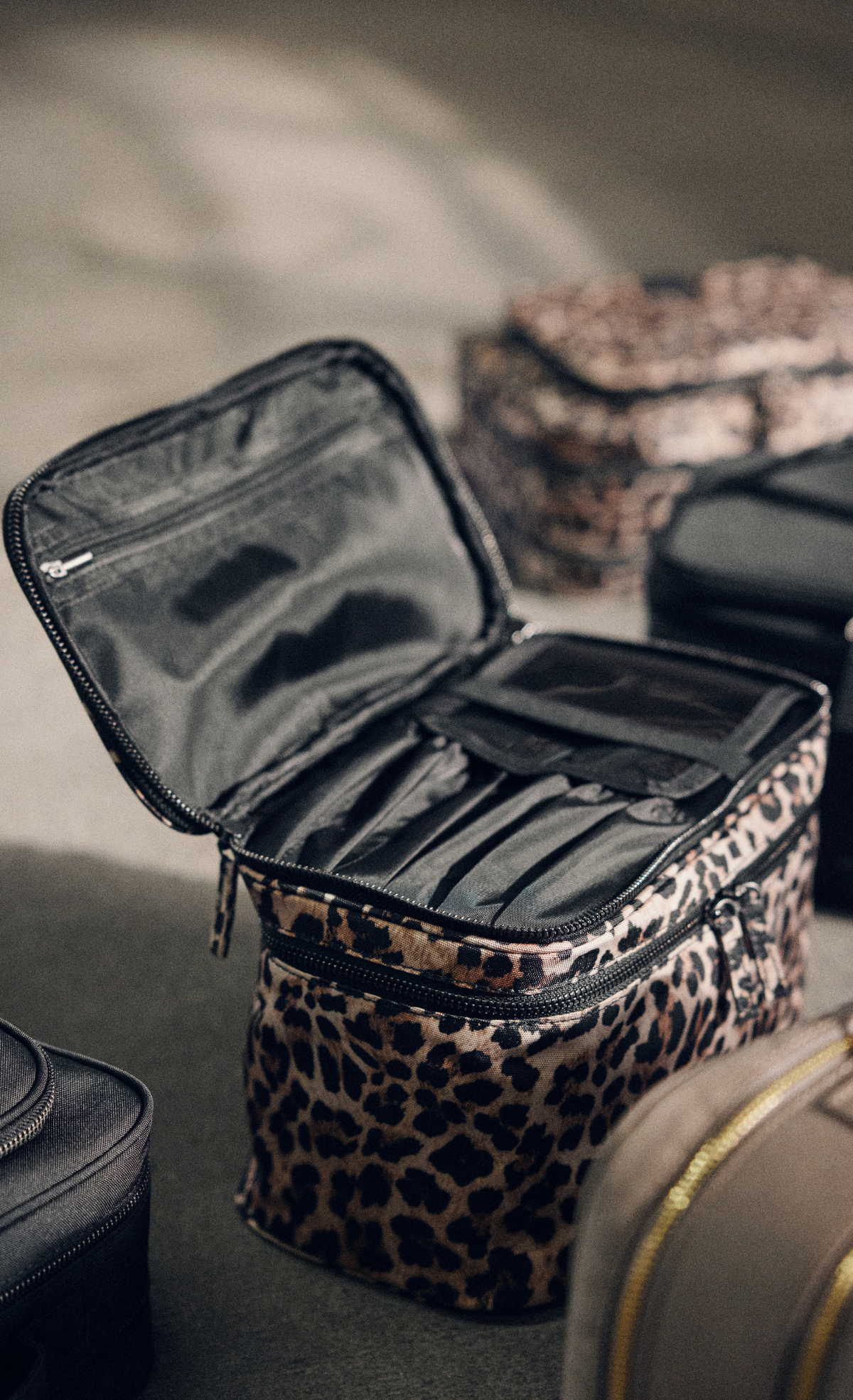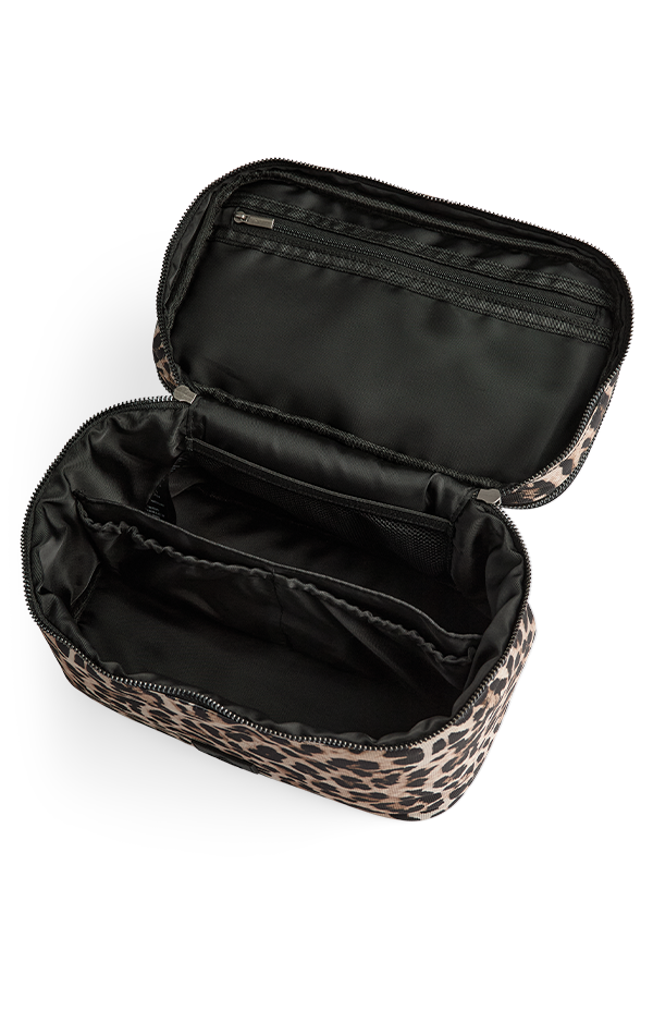 Lynlåsrummet øverst har inddeling til makeup børster samt en lynlåslomme