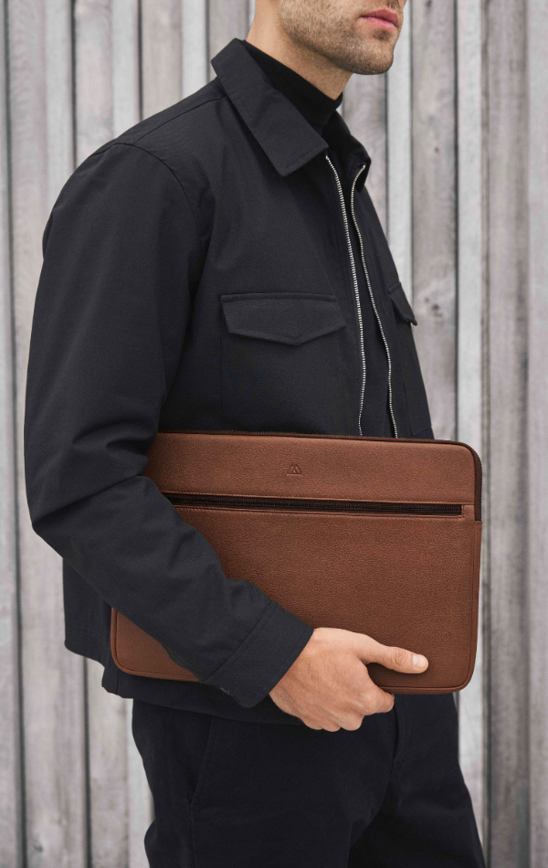 • Passer til en 14" laptop • Polstret indvendig for ekstra beskyttelse • Lynlåslomme på fronten til oplader eller småting • Lukkes med lynlås • Slidstærkt for indvendigt • Kan bruges alene eller lægges i en større taske • Læderets struktur og nuance kan variere naturligt og giver hvert produkt et unikt udtryk