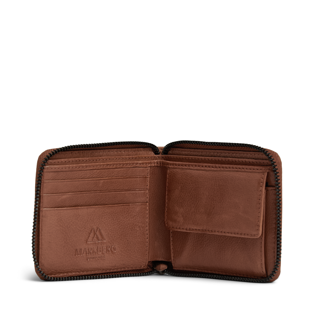 Klassisk pung i slidstærkt kalveskind med lynlåslukning hele vejen rundt. Det kompakte design kombinerer funktionalitet og tidløst udtryk – perfekt til både hverdag og rejse.