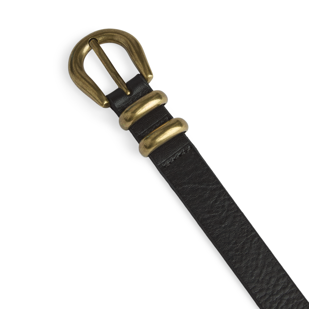 • Klassisk spænde i gylden finish • Dekorative spænde-detaljer • Justerbar pasform • Slankt design • Velegnet til både jeans og kjoler