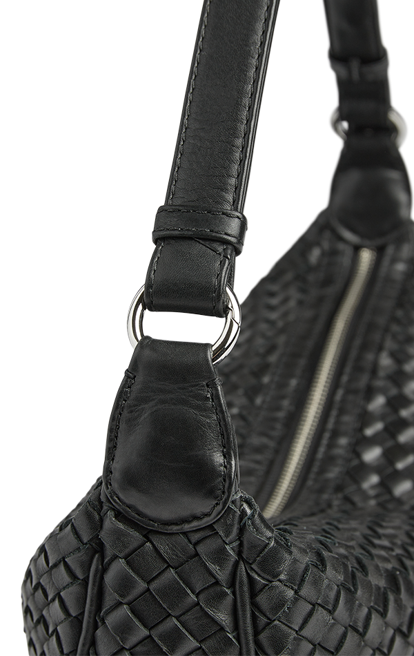 Tasken leveres med to stropper: en skulderhank og en crossbody strop. Stroppen udskiftes ved at åbne ringene i begge sider, hvorefter stroppen kan fjernes og udskiftes.
