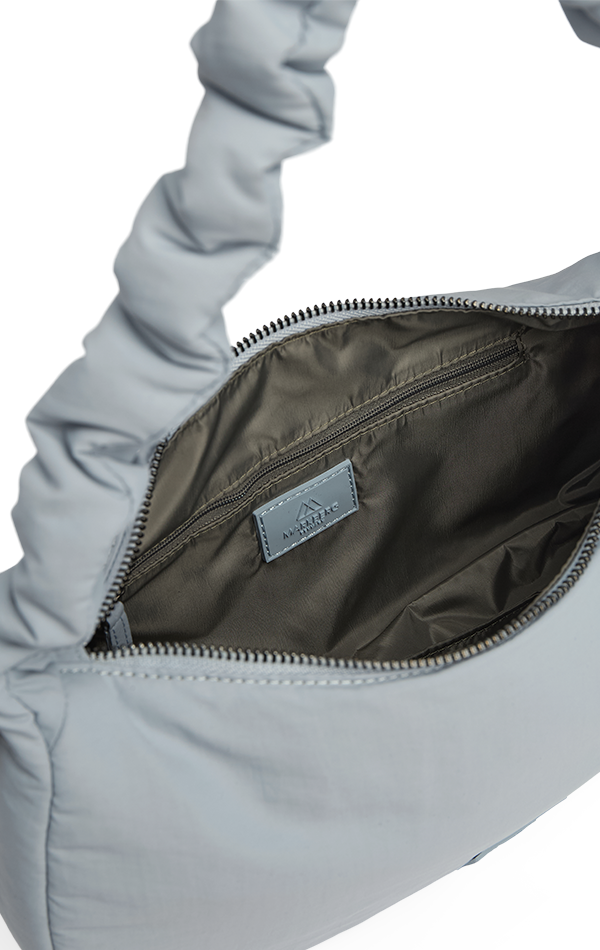 En elegant håndtaske med et sporty twist - ideel til både hverdagsbrug og fest. Den rynkede, blødt polstrede rem kan tilpasses med snøre og giver tasken et personligt og moderne udtryk.
