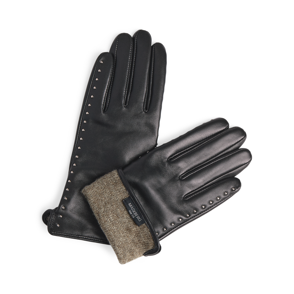 En moderne klassiker med kant. Denne handske kombinerer blødt skind med dekorative nitter, som giver et råt og feminint udtryk - perfekt til dig, der vil skille dig ud uden at gå på kompromis med komforten.