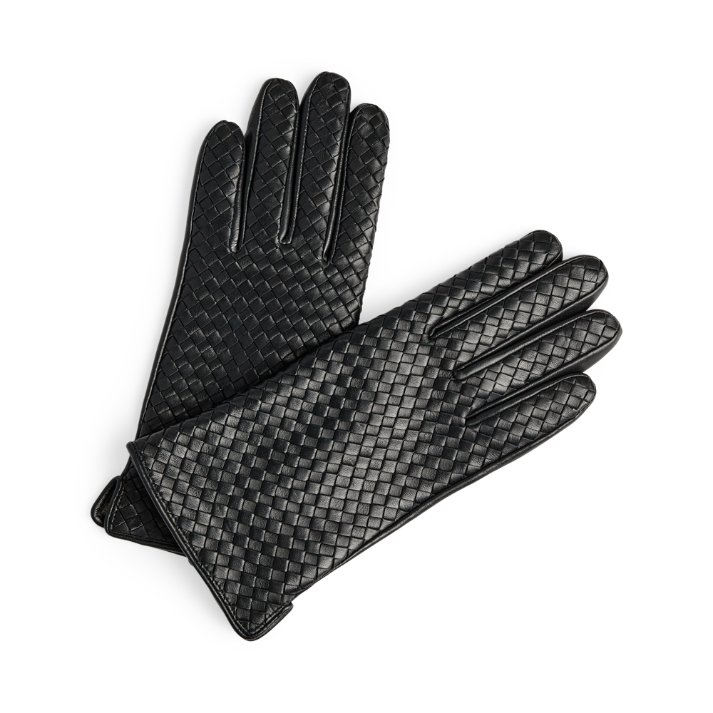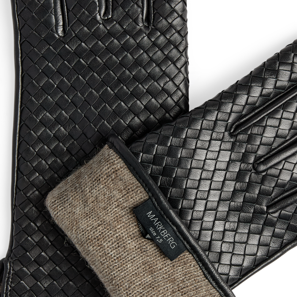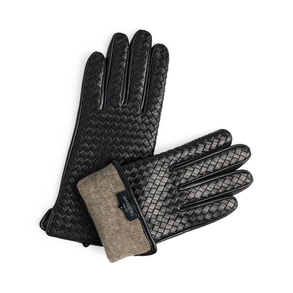 Elegant handske med håndflettet læder på overfladen og luksuriøst udtryk. Det klassiske design kombineres med varme materialer og blød komfort – perfekt til de kolde måneder.