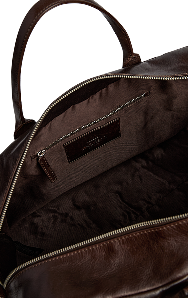 Eksklusiv weekendtaske i blødt okselæder med et klassisk og elegant udtryk. Tasken kombinerer luksuriøst materiale med funktionelle detaljer, perfekt til både rejse og hverdag.