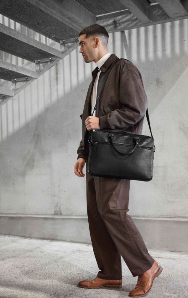 Tidløs arbejdstaske i blødt kalveskind med et minimalistisk og eksklusivt udtryk. Tasken er designet med fokus på funktionalitet og enkel elegance – perfekt til hverdagen på kontoret eller på farten.