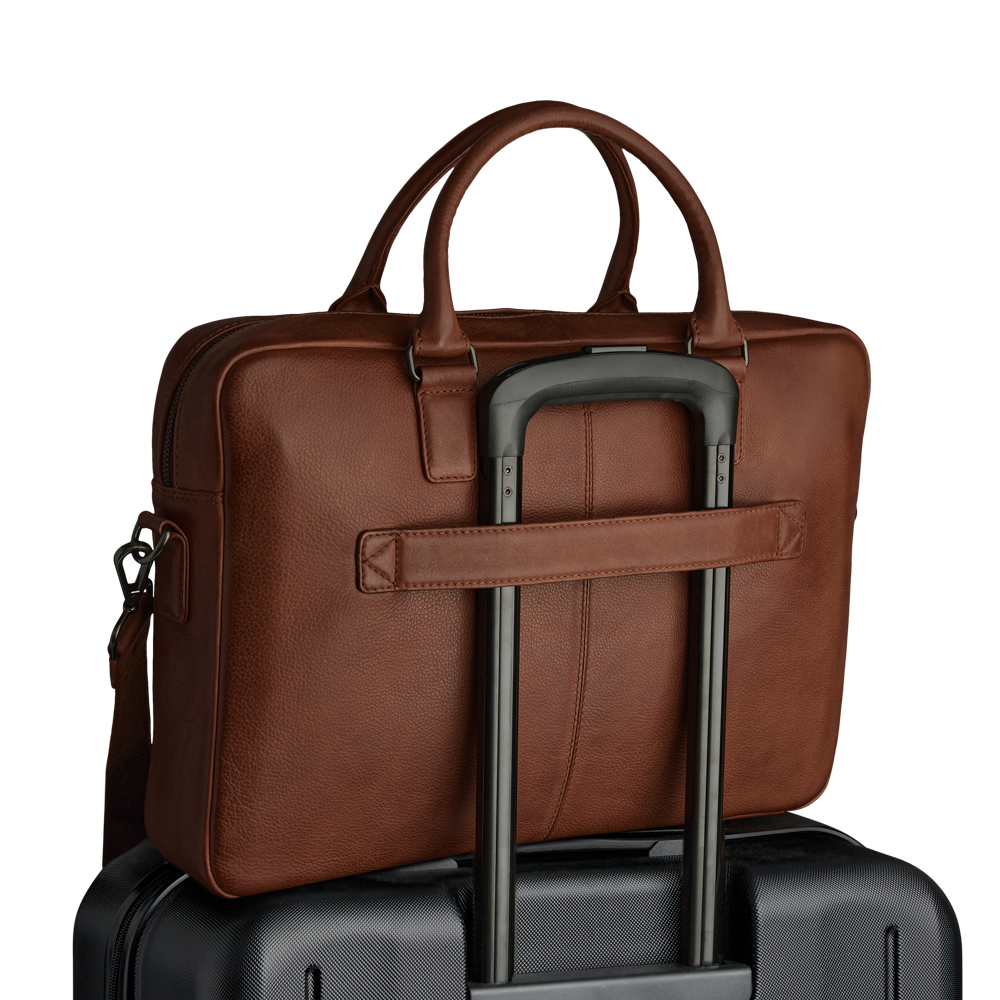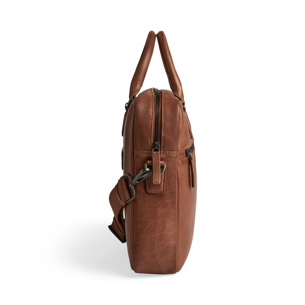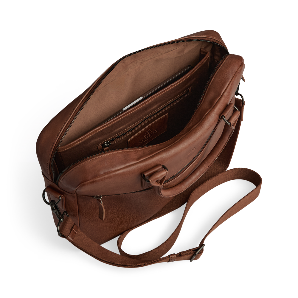 • Stort hovedrum med lynlås • Polstret rum med plads til laptop • Plads til 14 og 15' computer • Flere indvendige lommer til småting og penne • Lynlåslomme på fronten • Strop på bagsiden til fastgørelse på kuffert • Aftagelig og justerbar skulderrem • To bærehanke • Slidstærkt for indvendigt • Læderets struktur og nuance kan variere naturligt og giver tasken et unikt udtryk