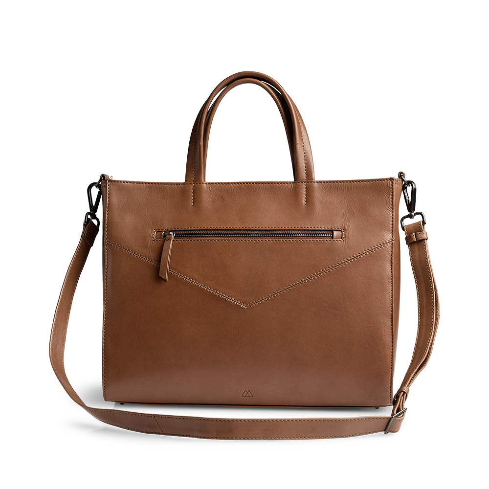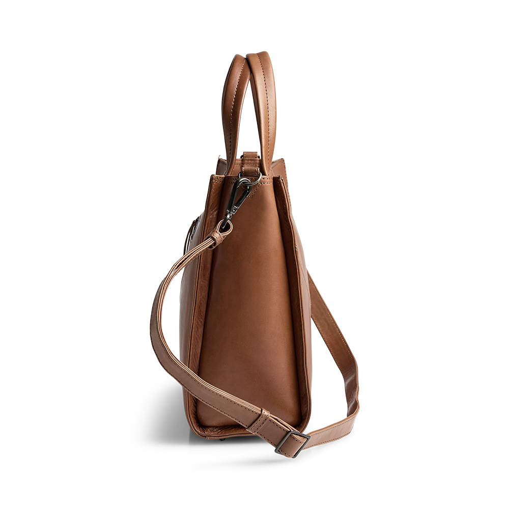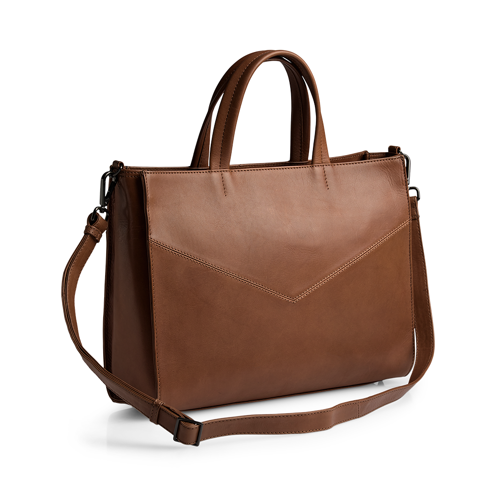 Vegetabilsk indfarvet læder baseret på naturlige materialer. Teksturen og farven kan variere, hvilket er læderets naturlige karakteristika. Denne lædertype får patina i takt med at den bruges. Dette giver tasken et unikt udtryk.