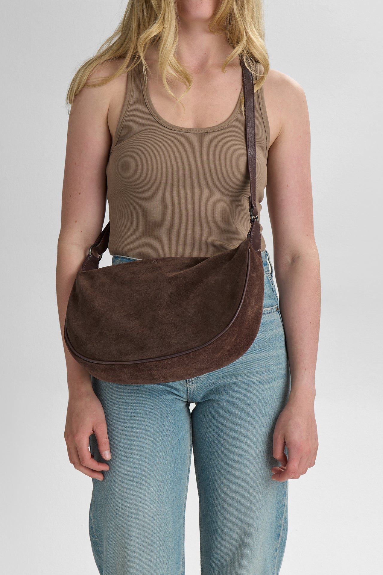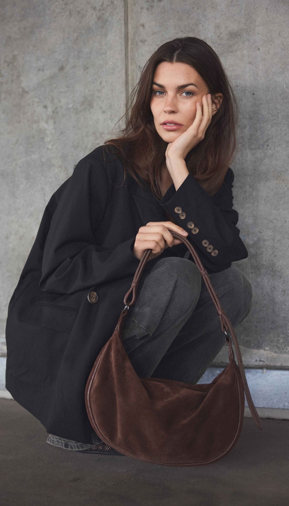 Tasken leveres med to stropper: en skulderhank og en crossbody strop. Stroppen udskiftes ved at åbne ringene i begge sider, hvorefter stroppen kan fjernes og udskiftes.