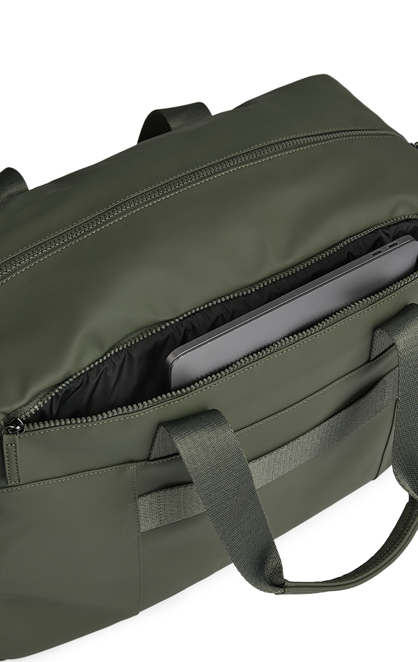 Weekendtasken har et seperat computerrum med padding for ekstra beskyttelse. Lommen tilgås i toppen af tasken, så man let kan tage computeren ind og ud uden at skulle åbne hovedrummet.