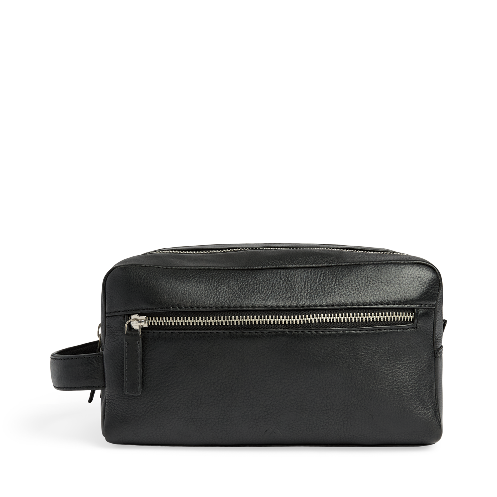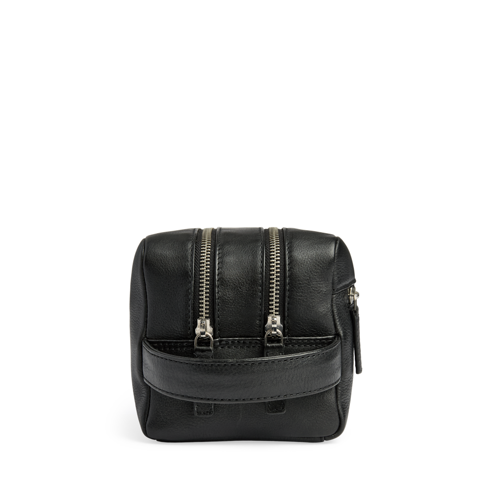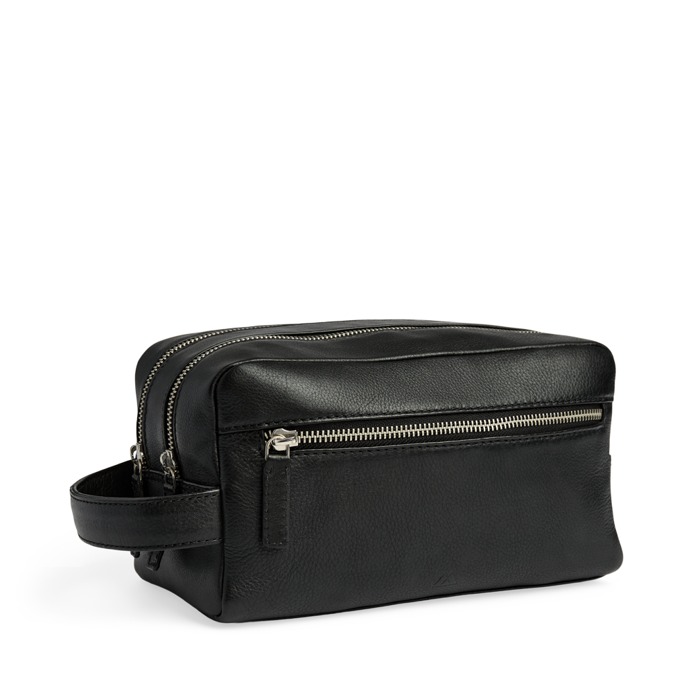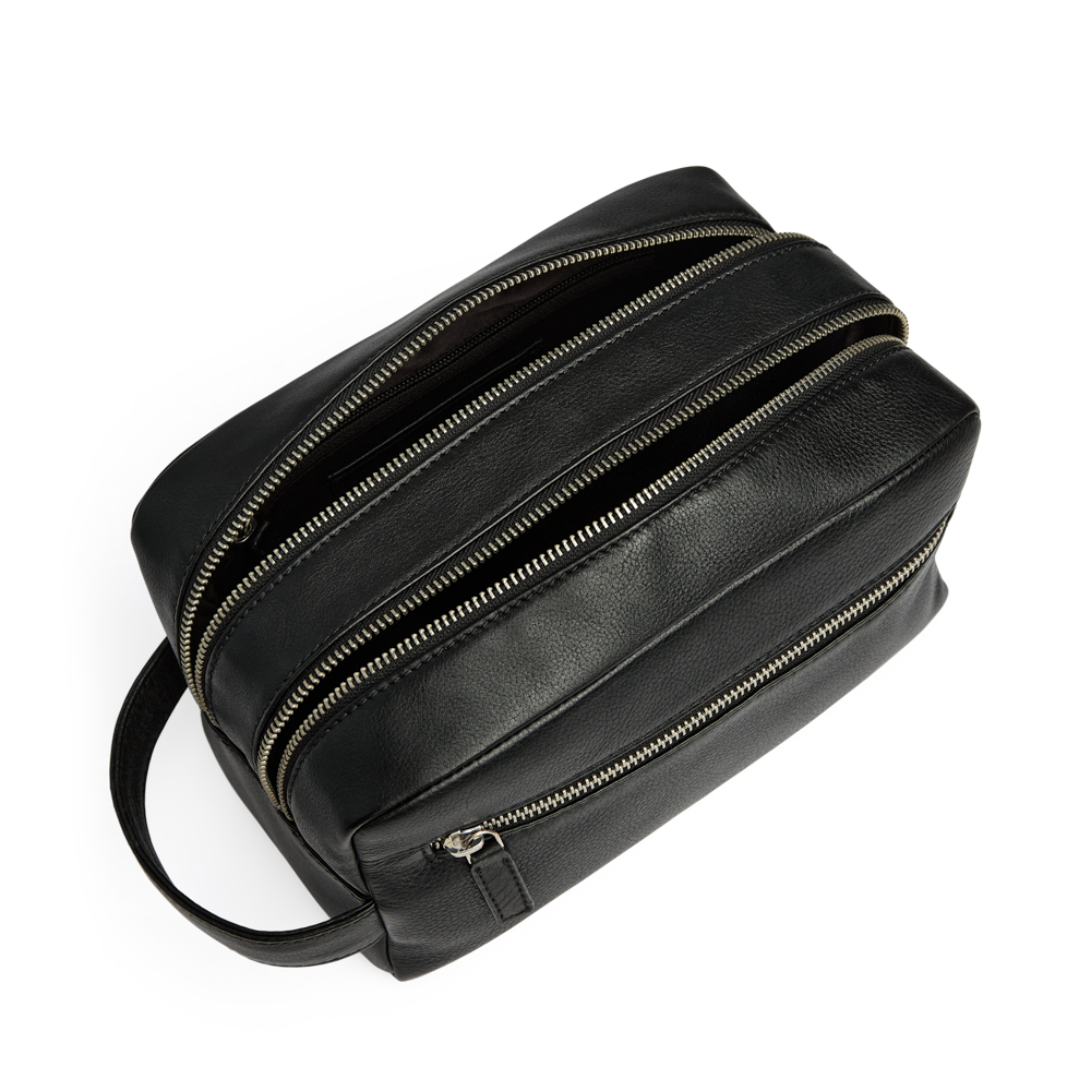 Stilren og funktionel toilettaske i blødt kalveskind. De to separate rum gør det nemt at holde orden på dine toiletsager – perfekt til både rejse og hverdag.