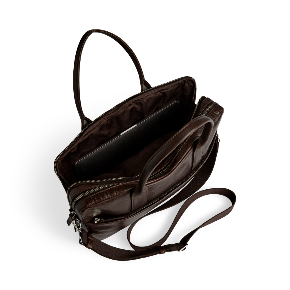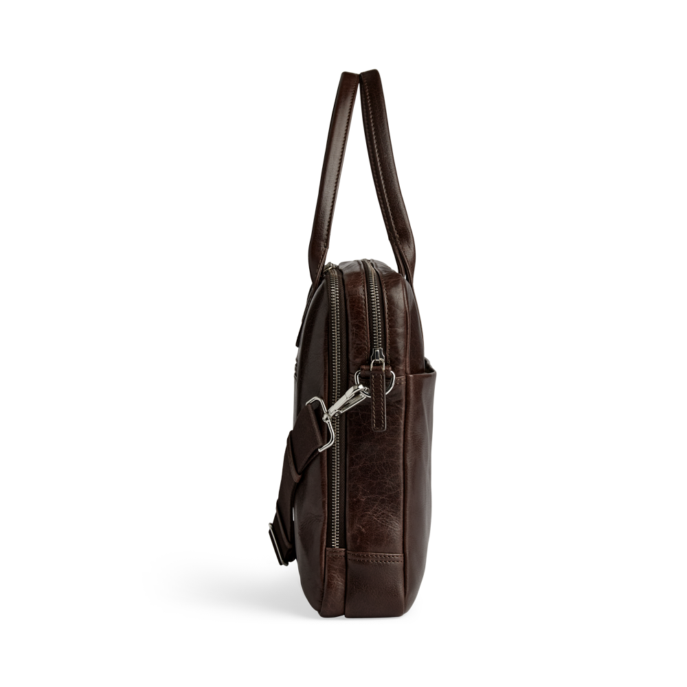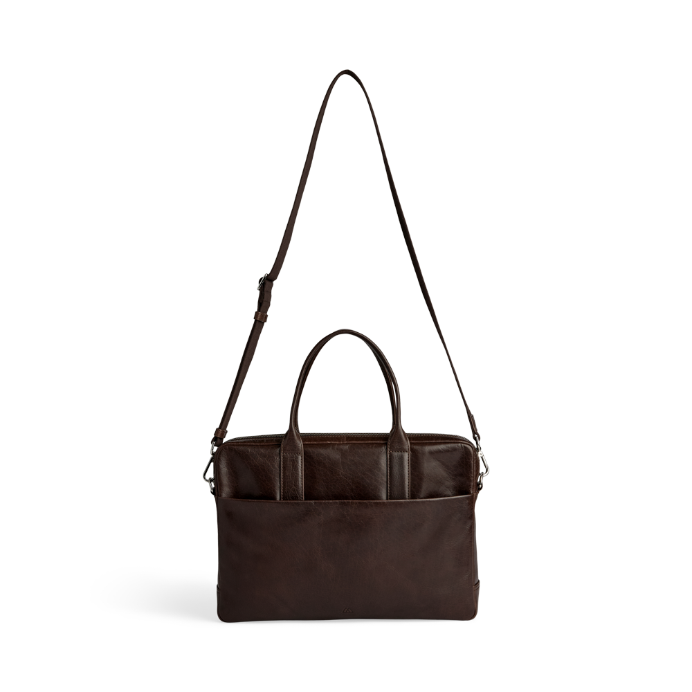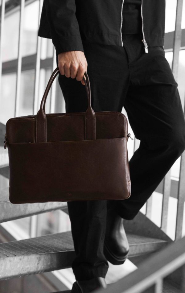 Elegant og funktionel computertaske i okseskind med et tidløst og maskulint udtryk. Tasken er designet med fokus på kvalitet og brugbarhed – ideel til både arbejde og rejser.