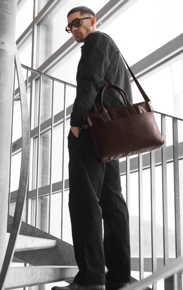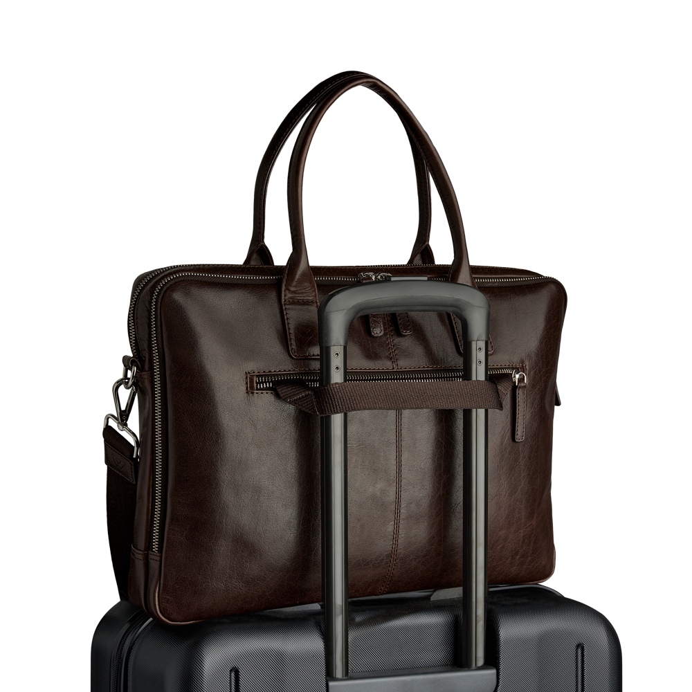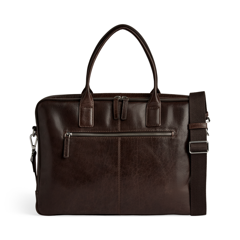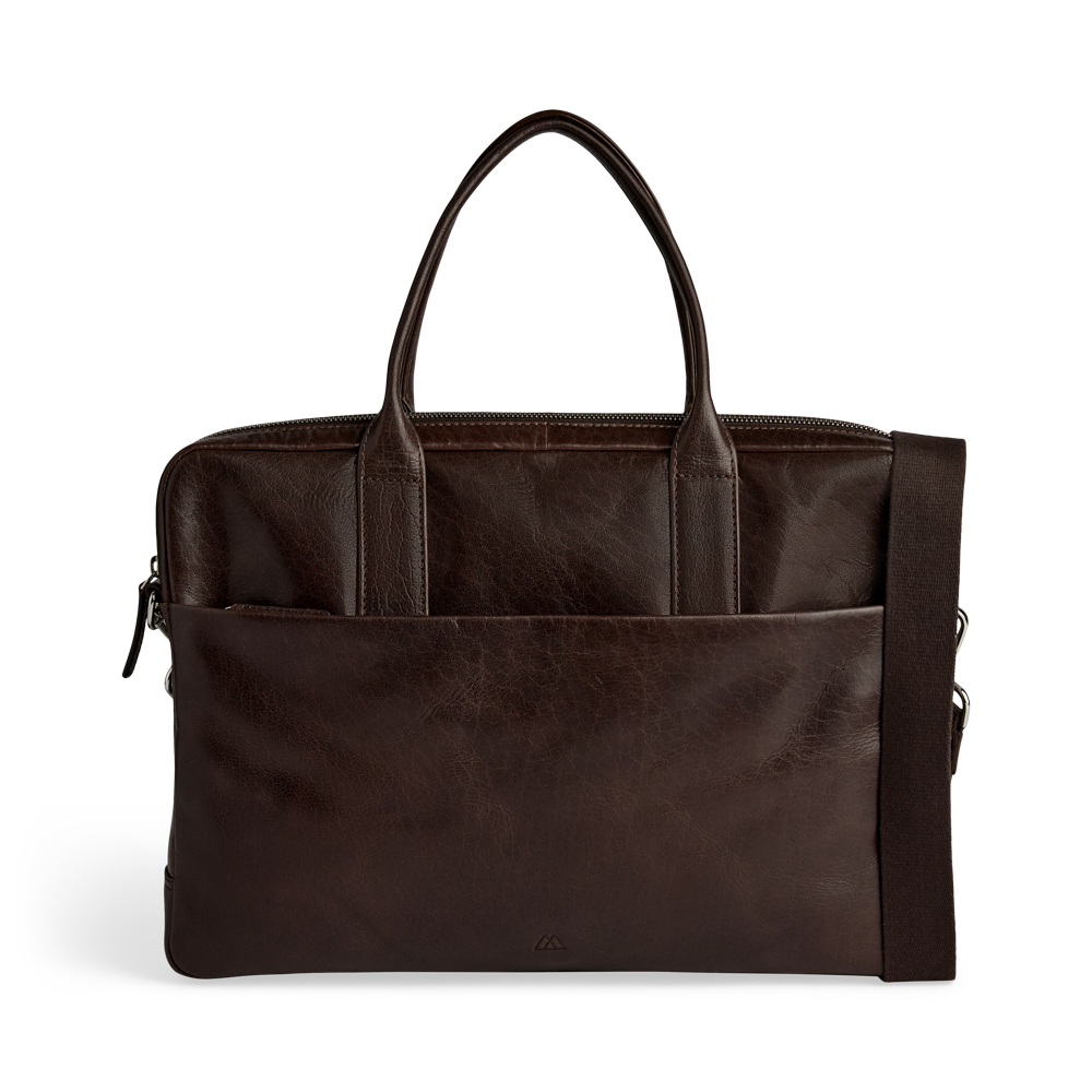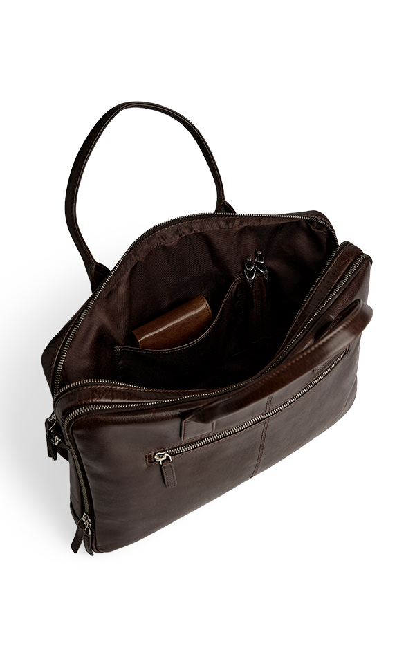 Elegant og funktionel computertaske i okseskind med et tidløst og maskulint udtryk. Tasken er designet med fokus på kvalitet og brugbarhed – ideel til både arbejde og rejser.
