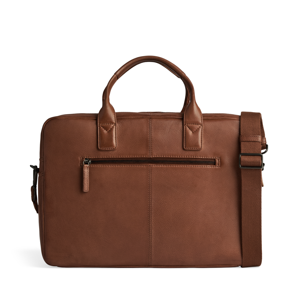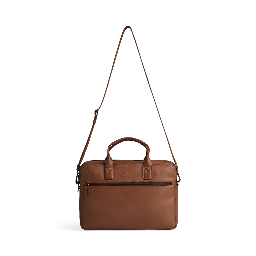 • Polstret rum med plads til 14' og 15' computer • Ekstra rum med plads til iPad eller tablet • To store lynlåsrum • Lynlåslomme på fronten og bagsiden • To bærehanke • Aftagelig og justerbar skulderrem • Strop på bagsiden til fastgørelse på kuffert • Slidstærkt for indvendigt • Læderets struktur og nuance kan variere naturligt og giver tasken et unikt udtryk