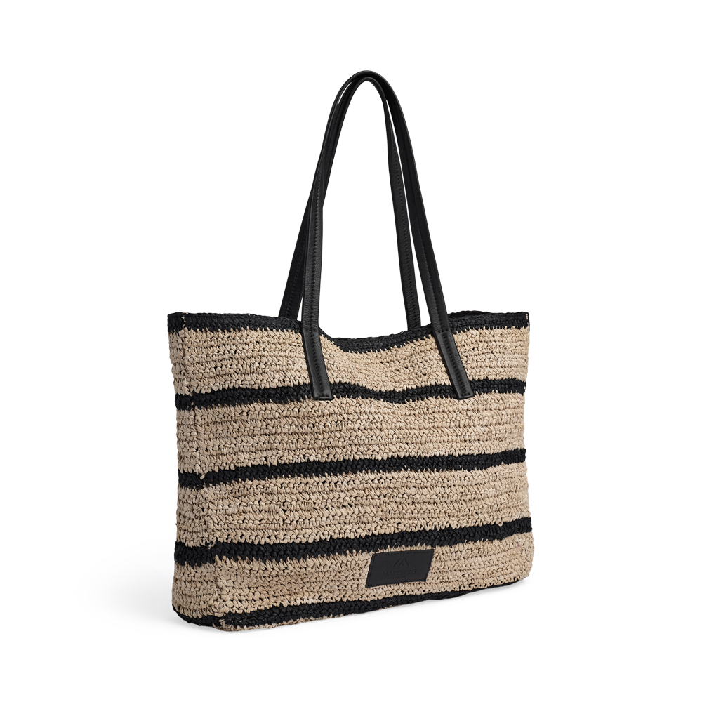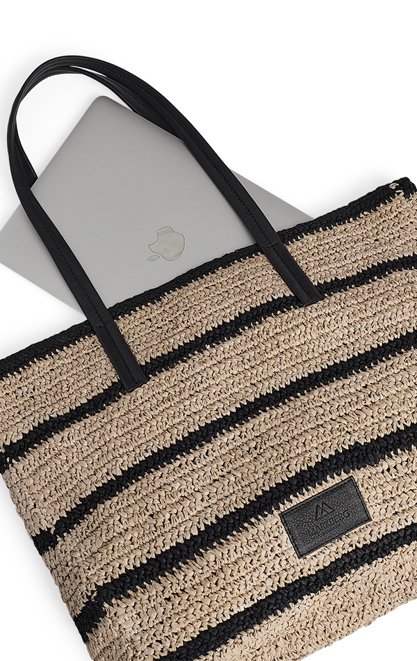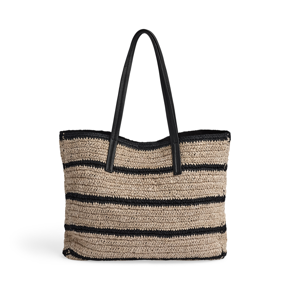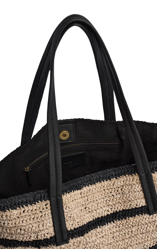 En rummelig og stilren taske med flettet struktur og lange læderhanke. Den kombinerer et let udtryk med god plads, hvilket gør den ideel til både hverdag, arbejde og weekendture.