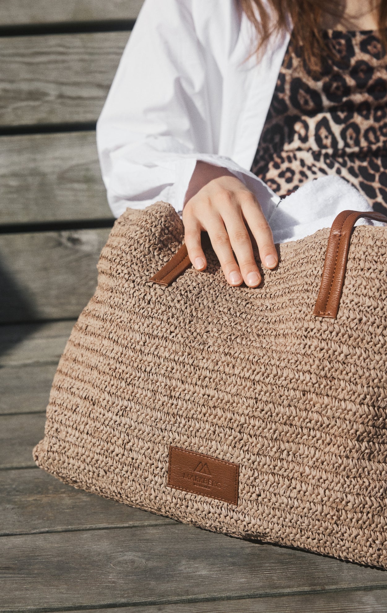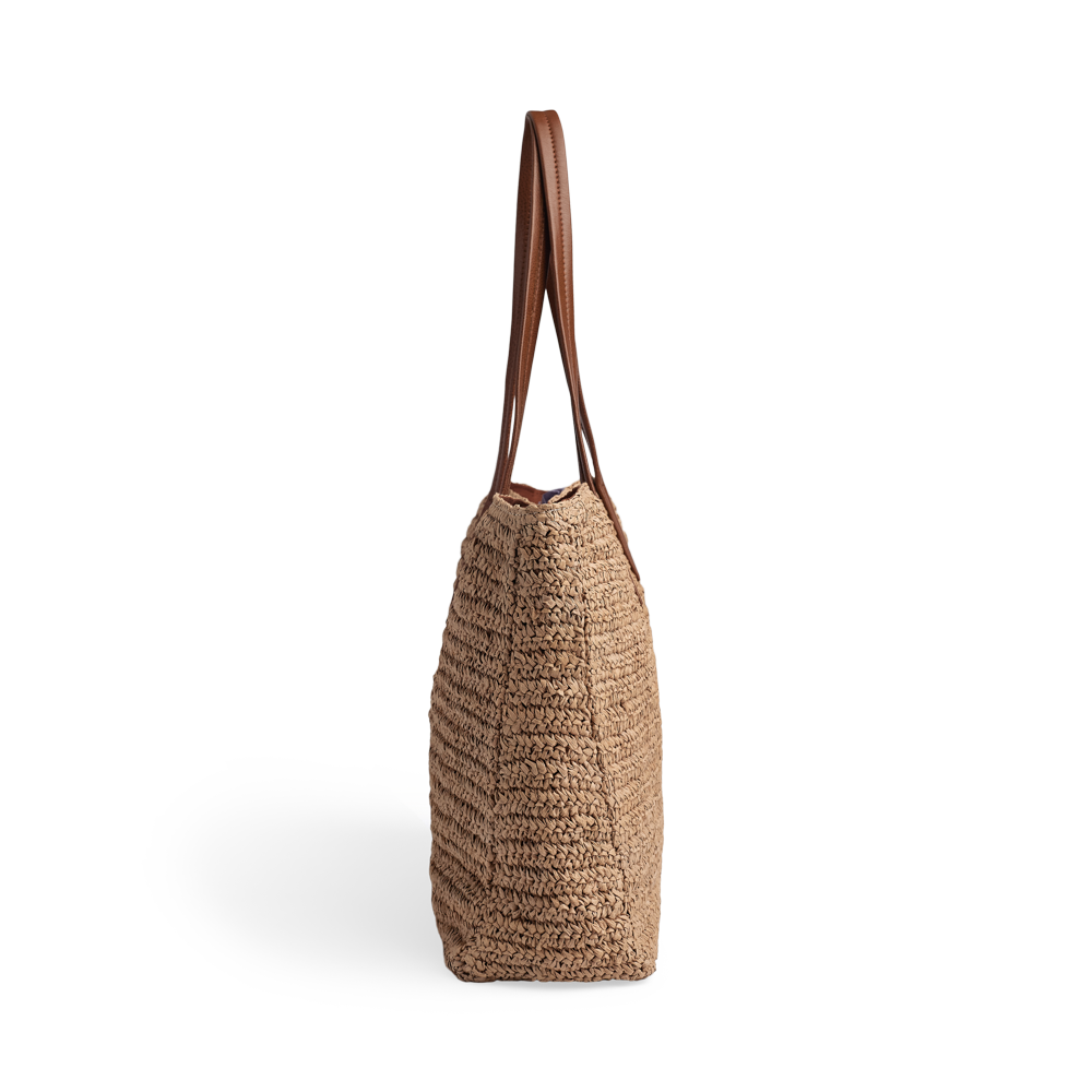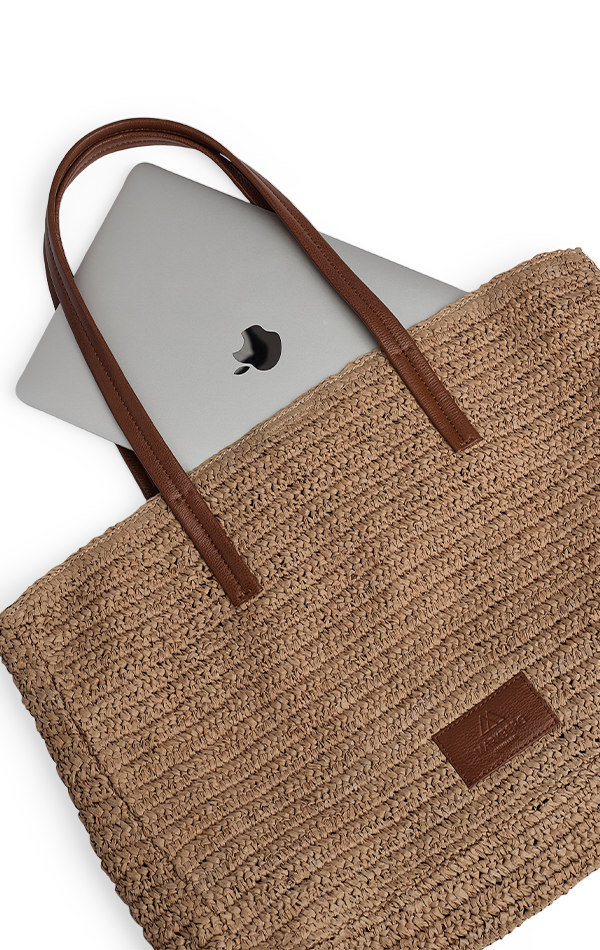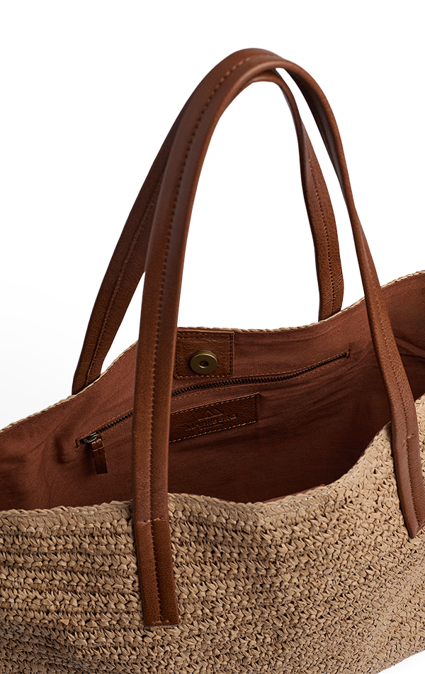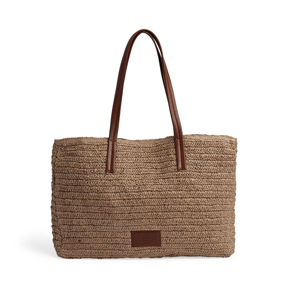 En rummelig og stilren taske med flettet struktur og lange læderhanke. Den kombinerer et let udtryk med god plads, hvilket gør den ideel til både hverdag, arbejde og weekendture.