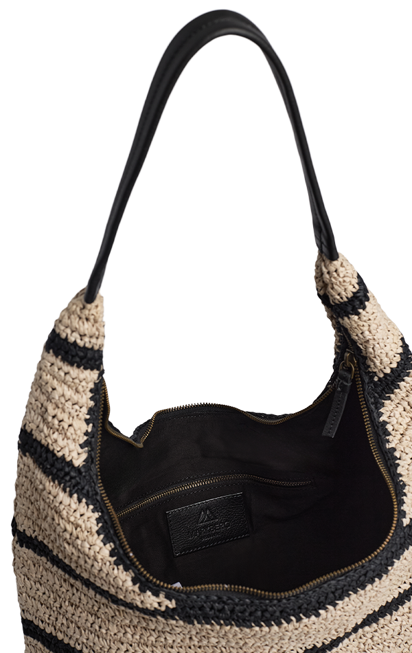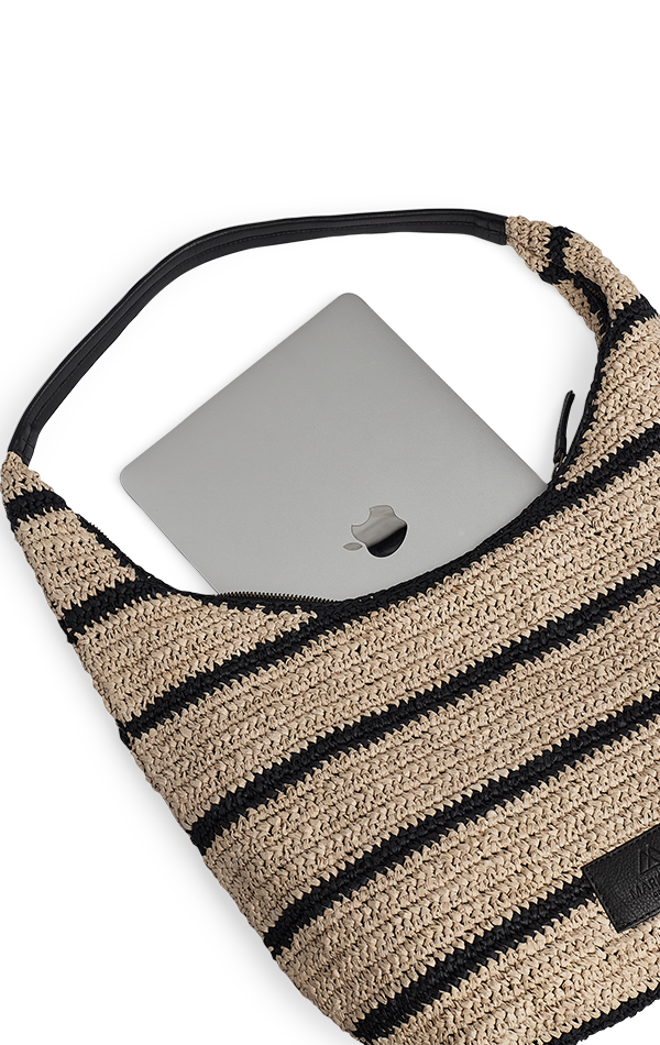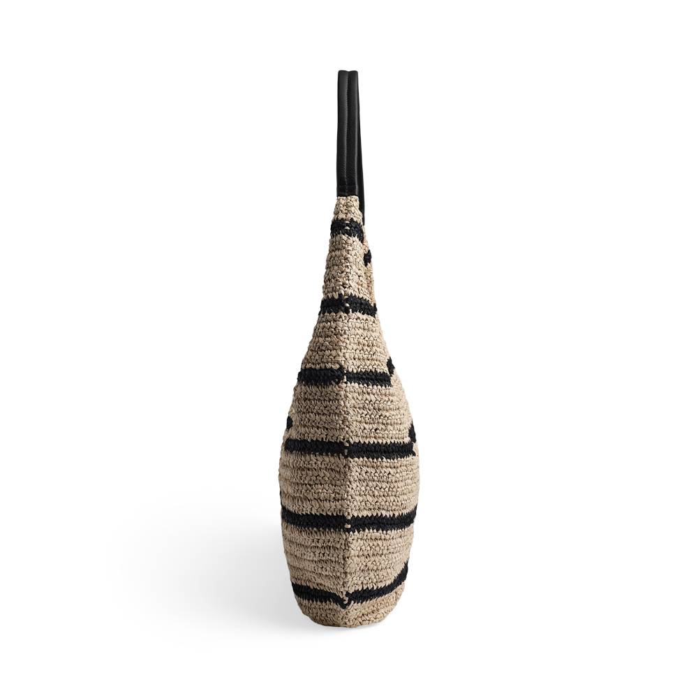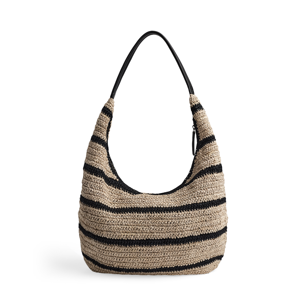 En let og rummelig taske med flettet struktur og elegant skulderrem. Det bløde design og den gode størrelse gør den ideel til både hverdagsbrug og sommerlige udflugter.