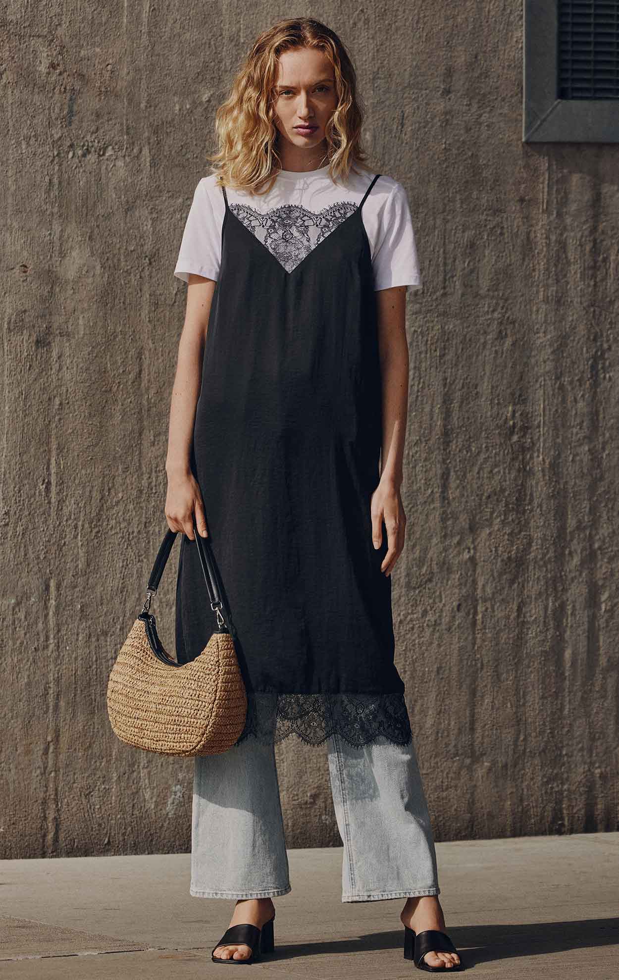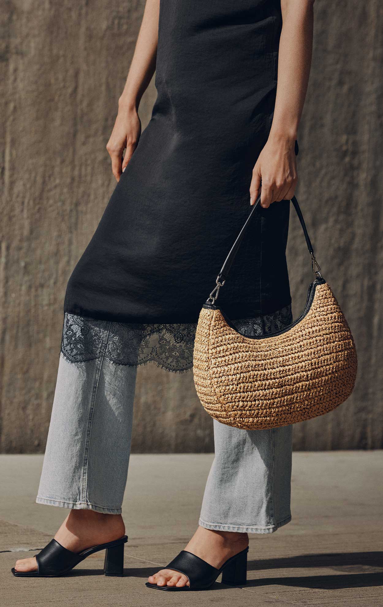 • Raffia taske med læder detaljer