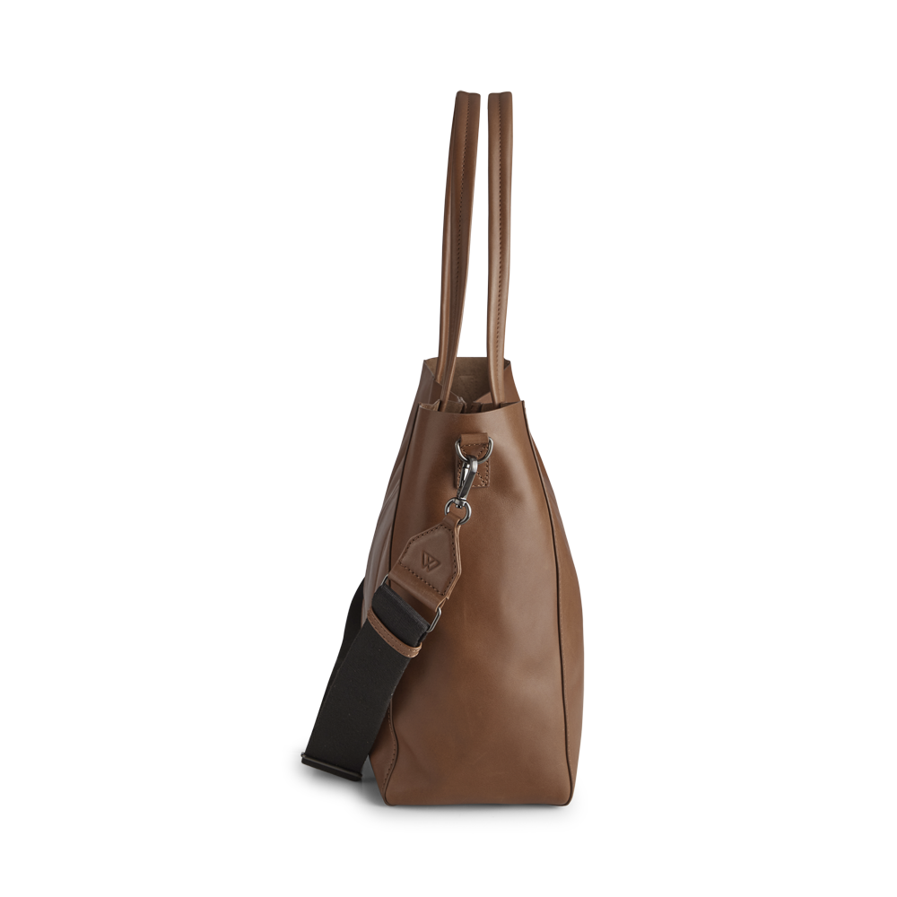 Vegetabilsk indfarvet læder baseret på naturlige materialer. Teksturen og farven kan variere, hvilket er læderets naturlige karakteristika.