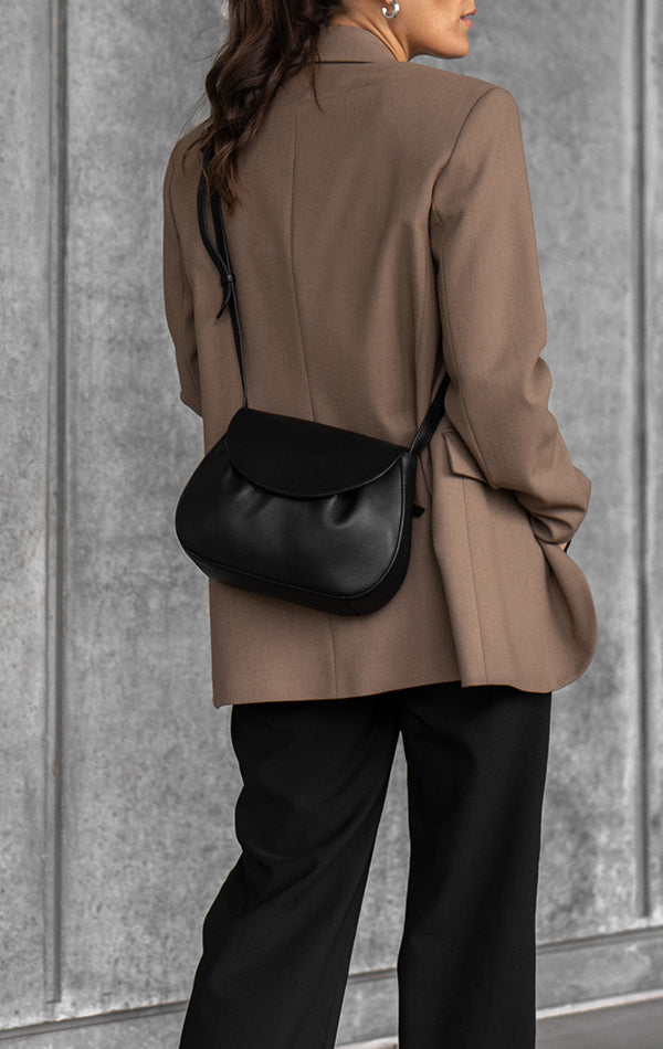 • Justerbar crossbody-strop i læder. Stroplængde 120-135 cm.