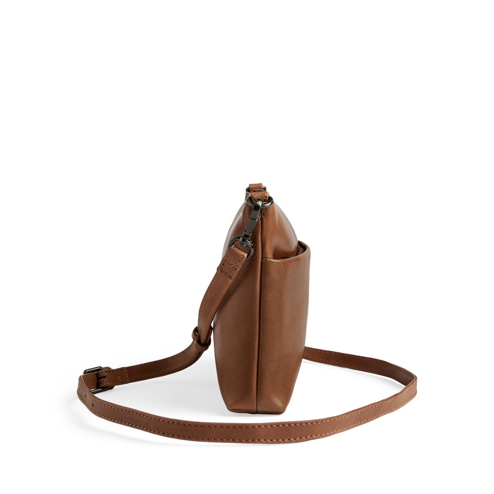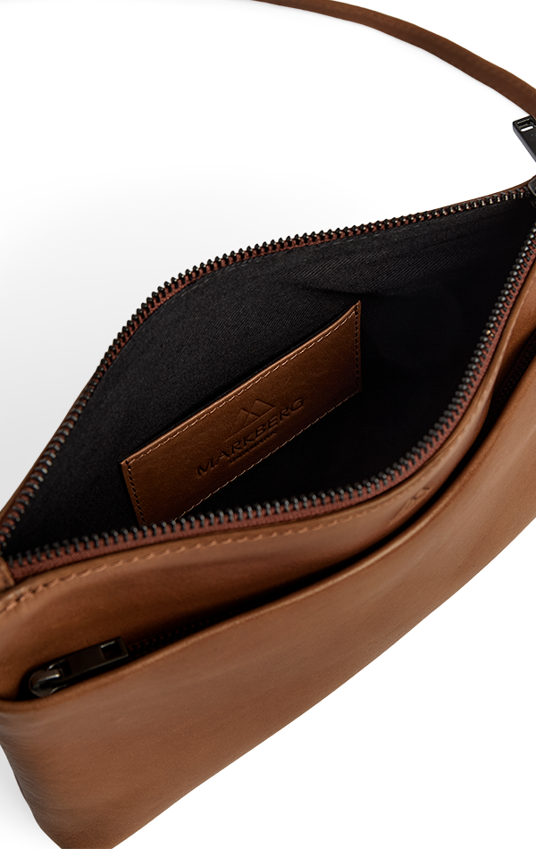 Vegetabilsk indfarvet læder baseret på naturlige materialer. Teksturen og farven kan variere, hvilket er læderets naturlige karakteristika. Denne lædertype får patina i takt med at den bruges. Dette giver tasken et unikt udtryk.