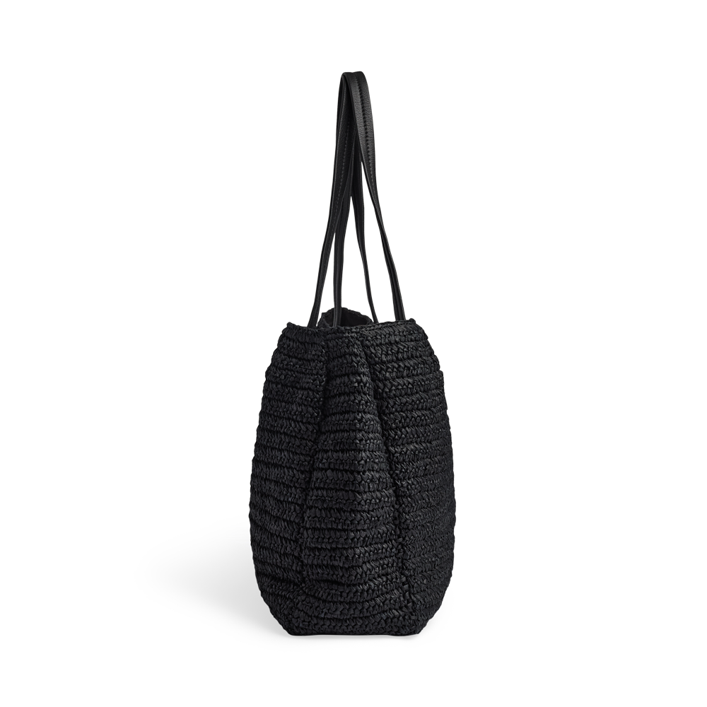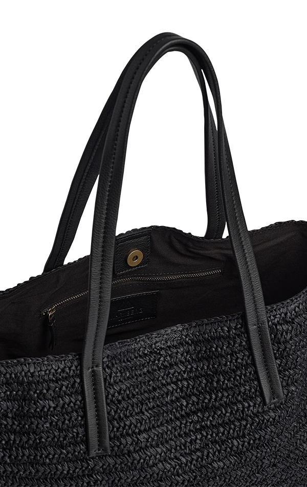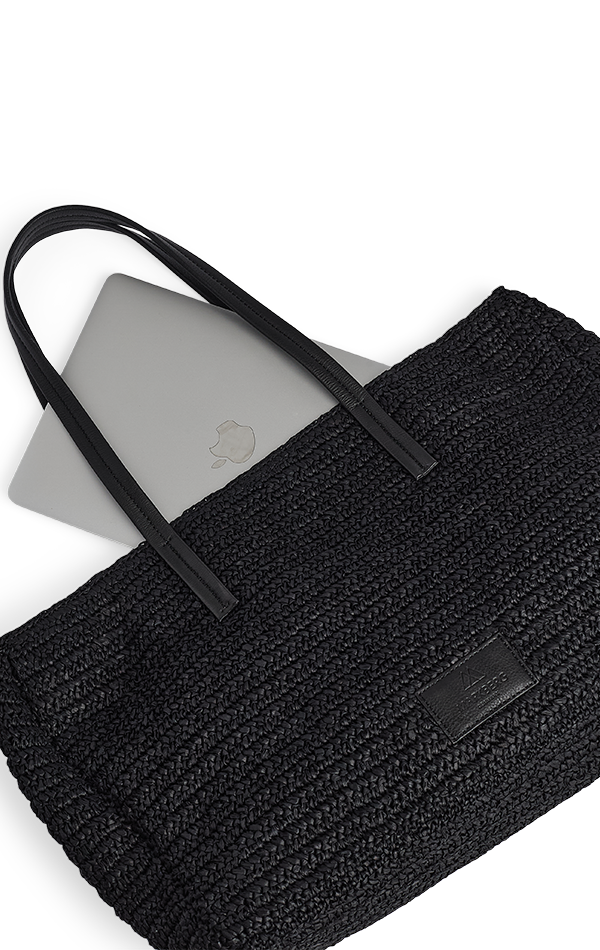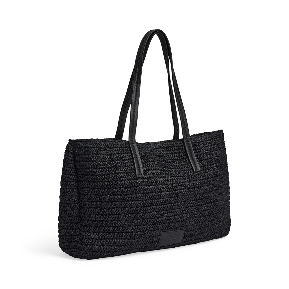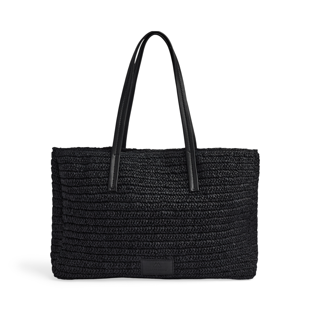 En rummelig og stilren taske med flettet struktur og lange læderhanke. Den kombinerer et let udtryk med god plads, hvilket gør den ideel til både hverdag, arbejde og weekendture.