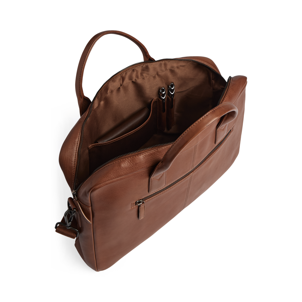 Eksklusiv arbejdstaske i blødt kalveskind med et tidløst udtryk. Designet kombinerer funktionalitet og klassisk elegance – ideel til både kontor og rejse.