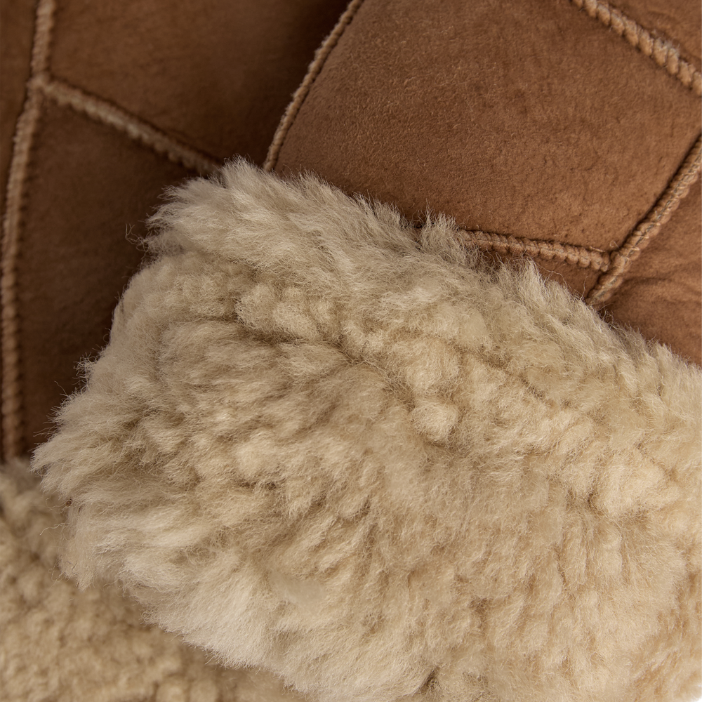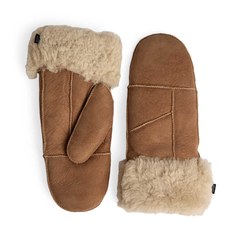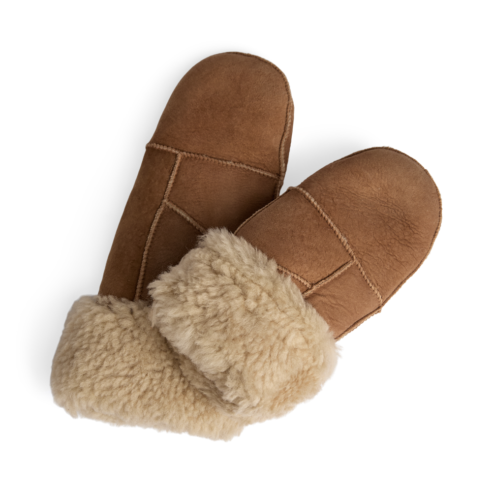 Varm lammeskindsluffe i naturligt rulam, som holder hænderne varme selv i minusgrader. Fremstillet i deadstock-materialer med fokus på komfort og funktion.
