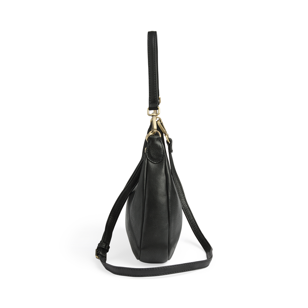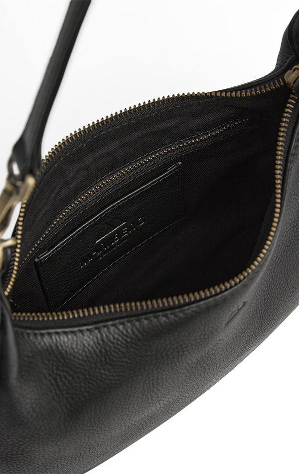 Elegant crossbody taske med en blød, afrundet form. Tasken har et hovedrum med lynlåslukning og en indvendig lynlåslomme, som giver god plads til hverdagens nødvendigheder. Den justerbare og aftagelige strop gør tasken nem at bruge både som skuldertaske og crossbody.