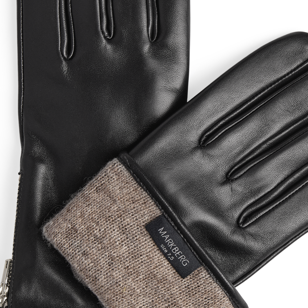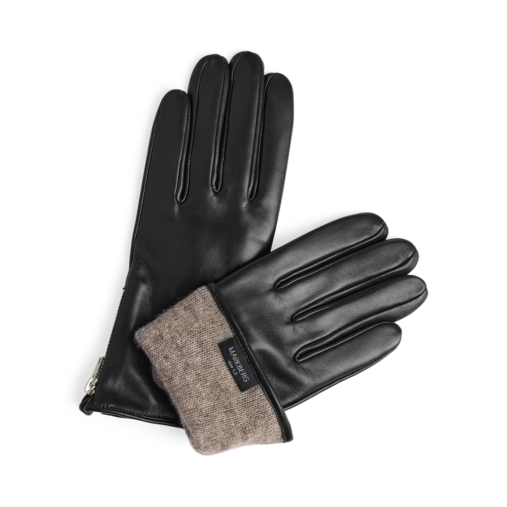 Eksklusiv handske i lammeskind med fine gulddetaljer.