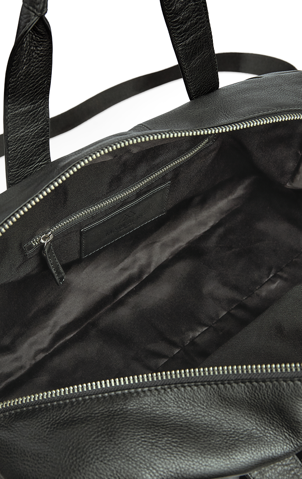 • Stort hovedrum med lynlåslomme indvendigt • Polstret rum med plads til iPad eller tablet • Lynlåslomme på fronten • Lynlåslomme på bagsiden • Strop på bagsiden til fastgørelse på kuffert • Aftagelig og justerbar skulderrem • To bærehanke • Lukkes med lynlås • Slidstærkt for indvendigt • Læderets struktur og nuance kan variere naturligt og giver tasken et unikt udtryk