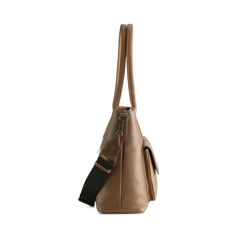 Vegetabilsk indfarvet læder baseret på naturlige materialer. Teksturen og farven kan variere, hvilket er læderets naturlige karakteristika.