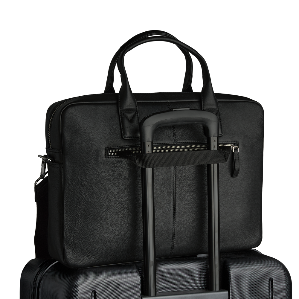 • Polstret rum med plads til 14' og 15'computer • Ekstra rum med plads til iPad eller tablet • Lynlåslomme på fronten og bagsiden • Stort hovedrum med lynlåslomme indvendigt • To bærehanke • Aftagelig og justerbar skulderrem • Strop på bagsiden til fastgørelse på kuffert • Lukkes med lynlås • Lille lomme indvendigt med plads til 2 kuglepenne