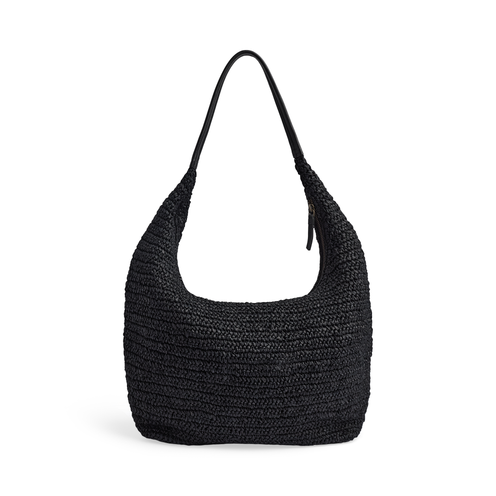 En let og rummelig taske med flettet struktur og elegant skulderrem. Det bløde design og den gode størrelse gør den ideel til både hverdagsbrug og sommerlige udflugter.